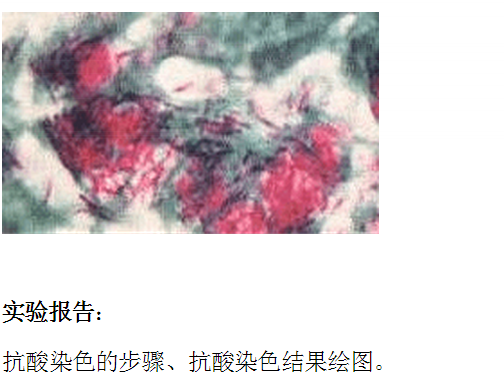 分枝桿菌細(xì)胞壁含脂質(zhì)較多,其中主要成分為分枝菌酸,此物具有抗酸性,染色時(shí)與石炭酸復(fù)紅結(jié)合牢固,能抵抗酸性乙醇的脫色作用,因此抗酸菌能保持復(fù)紅的顏色,達(dá)到染色目的。 材料