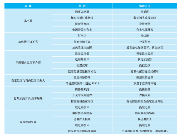 1)干燥箱工作室溫度接近設定溫度時,加熱指示燈忽亮忽暗,反復多次,屬正常現象。一般情況下,在測定溫度達到設定溫度后 30 min 左右,工作室內進入恒溫狀態。